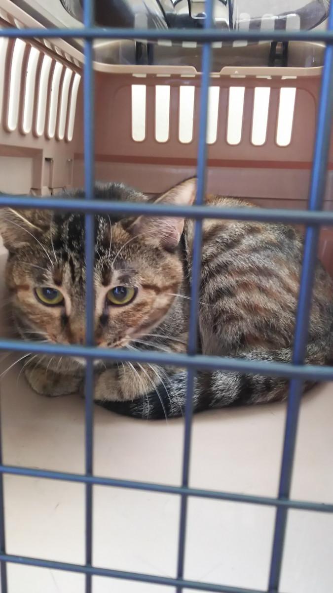 先生を目の前にした途端、尻尾を内側へしまい込んでしまい怖がって診察台にしがみついていました。助手の先生に撫でてもらいながら、あっという間に注射完了。帰る為キャリーに入れようとしても今度は診察台から手を離しません。こんなに怖がりなのかと改めて感じました。お疲れ様です。