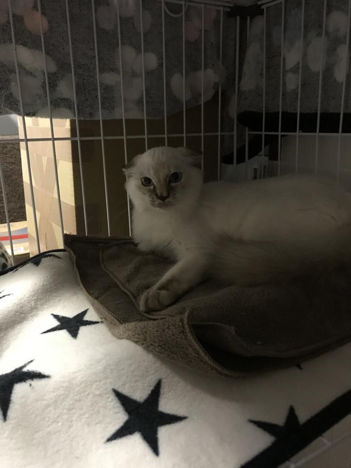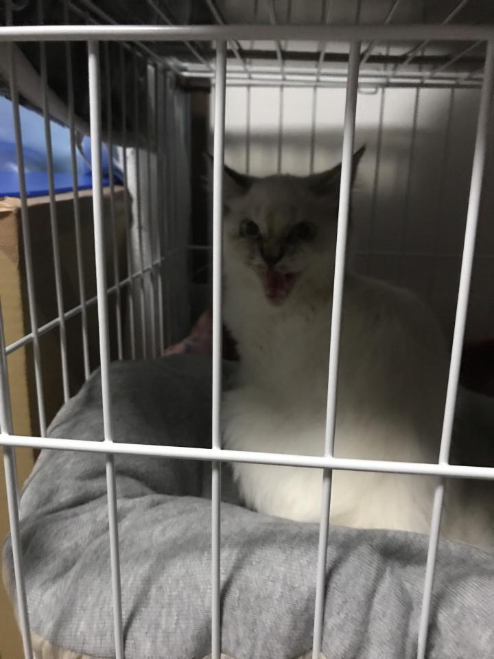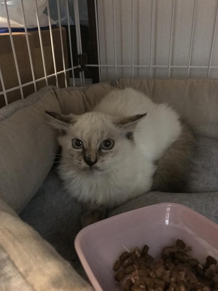 先住猫2匹がいるため、部屋は別にして人が常にいる空間に一緒にいないためだとは思いますが(´・ω・`;)