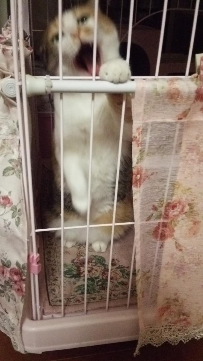 ケージ前にいる私をちょいちょいしようとしている可愛いショット…だったはずが、アクビの瞬間と重なり、荒ぶるふくちゃんみたいな仕上がり…(笑)