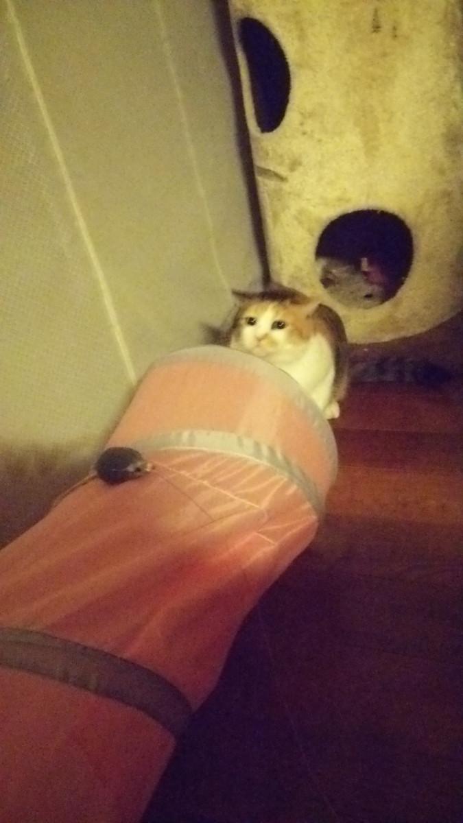 トンネルに乗ったねずちゅーを狙うふくちゃん💕
