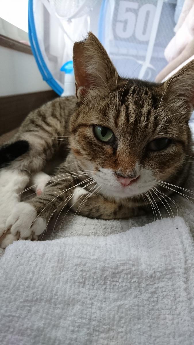 暫くしてから2階で寝ている3号の様子を見に行くと…寝ていましたが、私の気配を感じて目を覚ましました。