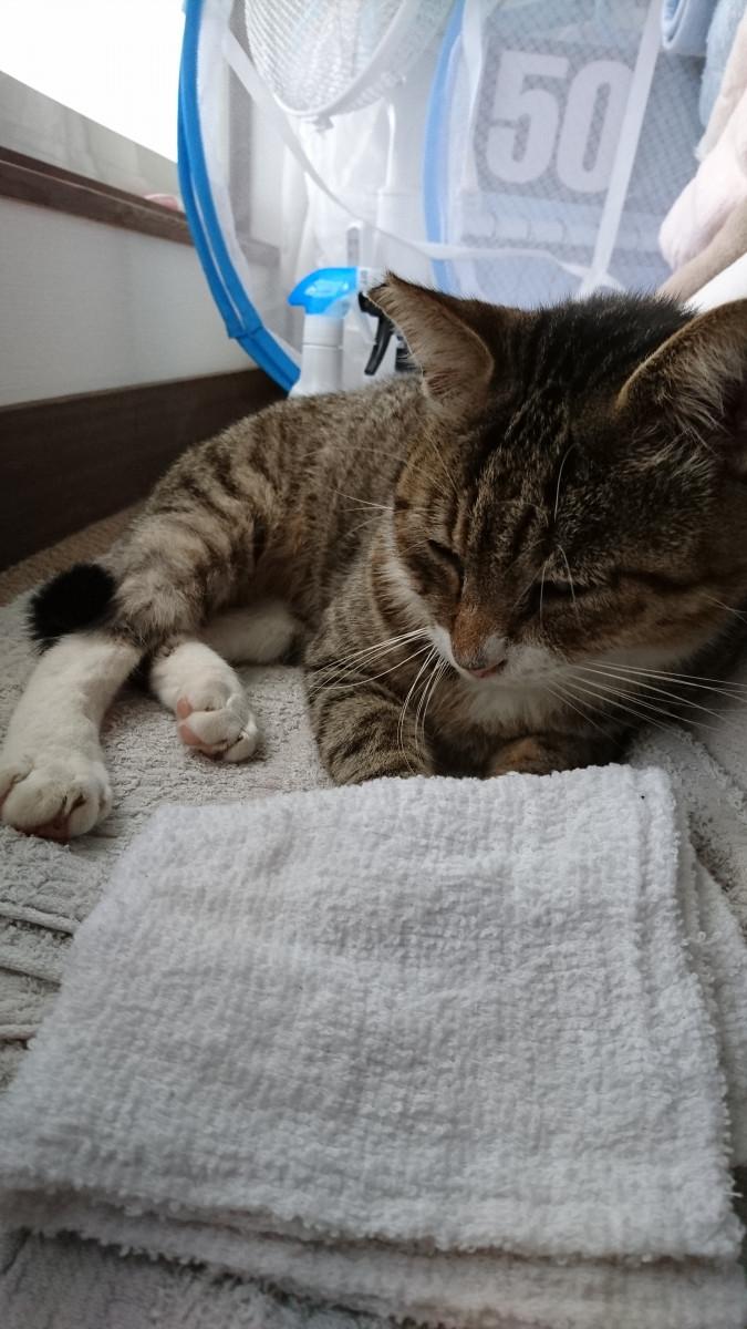 そしていつもの様に3号用のタオルをひいて、小さく切ったタオルで体をゴシゴシ拭いてあげました。