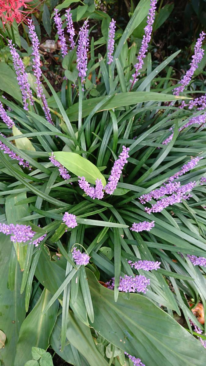 庭には、ヤブラン(リリオペ)が花火のように咲いています。