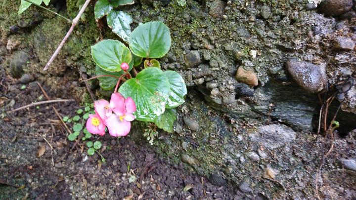 玄関のエントランスのコンクリートの間から、ベゴニアが~❕