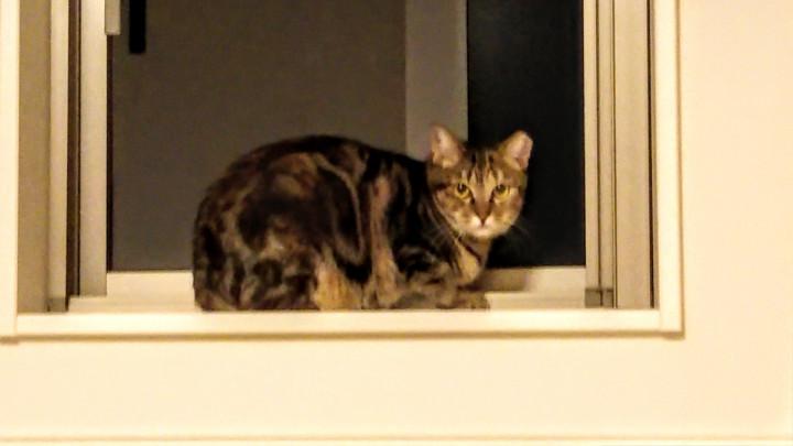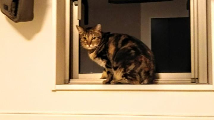 私が台所に行くと逃げ出してきて窓のところに駆け上がり逃げようと必死。。笑