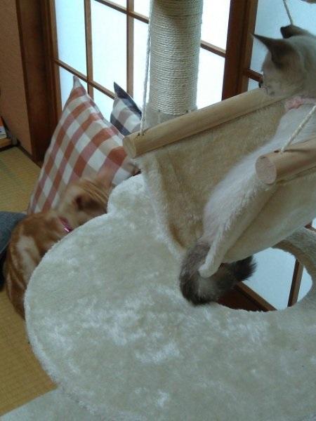 チビをケージから出したら、チビのストーカーのごとく離れない(笑)