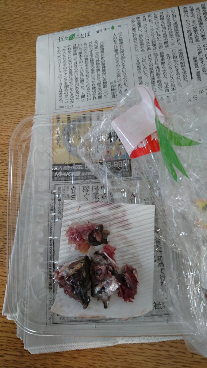 しかも、小鯵の頭残ってます…