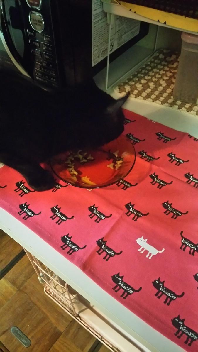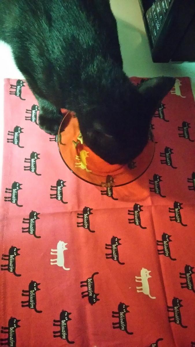 今日はかわいいマットがあったので猫ちゃん達のご飯処用にひきました。