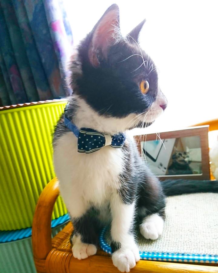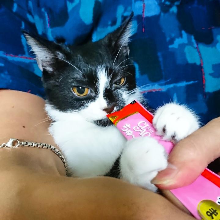 初めての首輪、初めての香箱、ドヤ顔ちゅ~るの3枚です。私としてはかわいさ推しで上の2枚かなーと思っていたのですが、選ばれたのは…