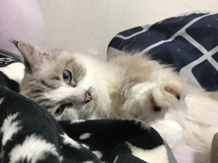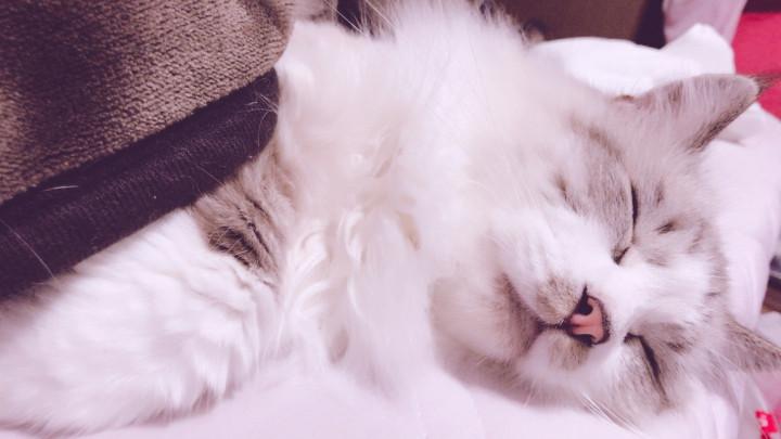毛布をかけて幸せそうに寝るノエル笑笑