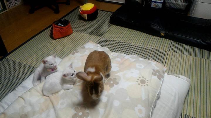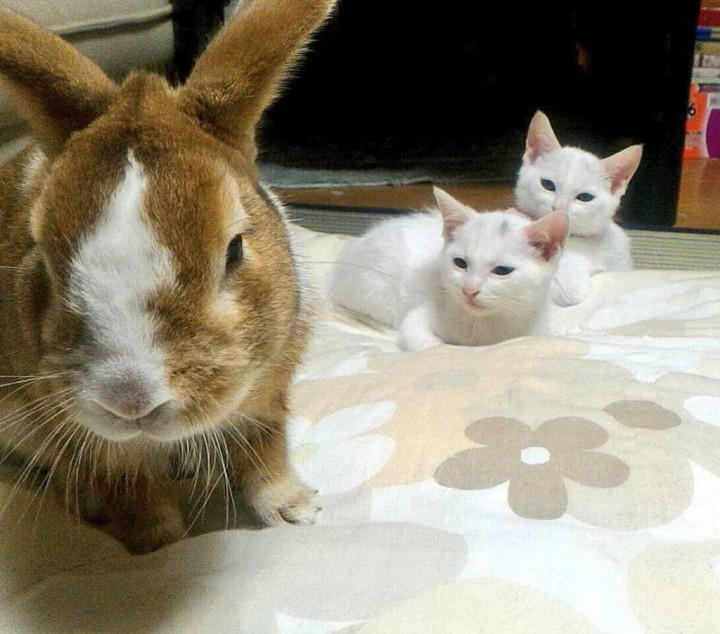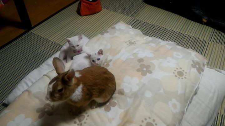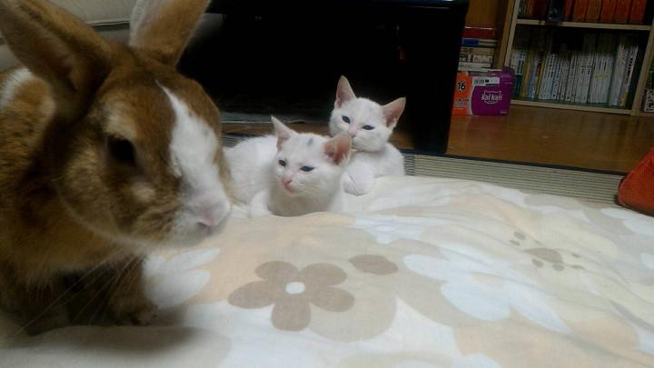 猫さんとウサギさん飼っています。 今保護している兄弟の真っ白の子猫(獣医さんによると生まれて1ヵ月半~2ヵ月、オスです)のご家族募集中です?? 先住民ウサギさんといい距離感の元気兄弟です??? ...