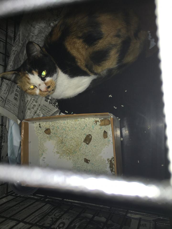 ママじゃない三毛。逃げ回り職員さんに怪我をさせてましたけど、、、車内でも鳴き叫んでましたけど、、、静かです。