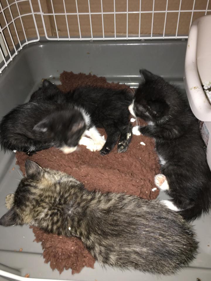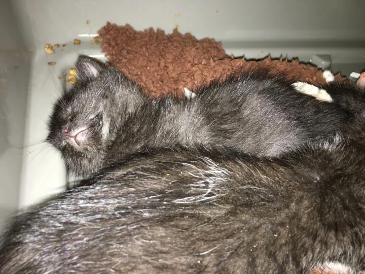 下痢ひどくガリガリで、食べないし鳴くし、可哀想なので1つにまとめたら落ちついてもりもり食べ、触っても起きないほど爆睡してます。