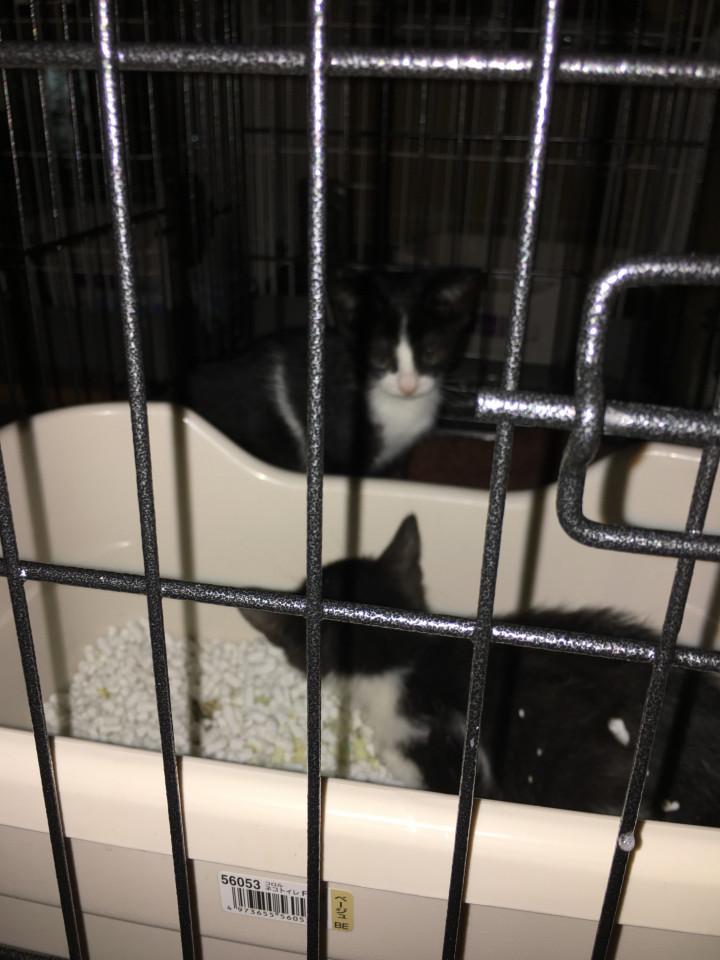 トイレにはまってるのは、前日に衰弱してたとこ保健所ち持ち込まれた仔猫。