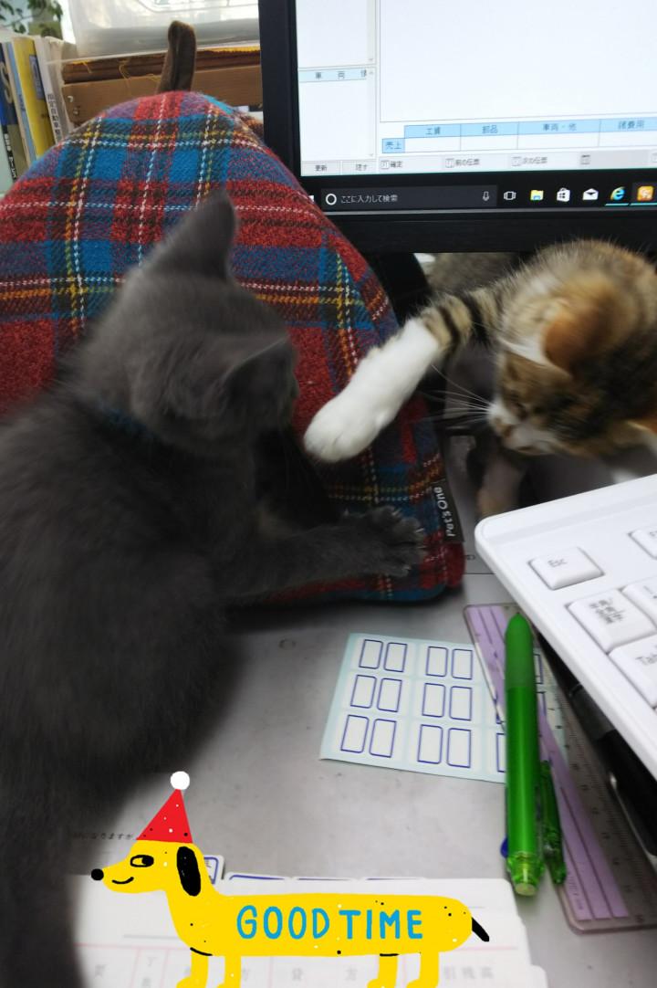 ココで出会ったロシアンブルー風のグレーカラーのジル君♂とネコLIFEを楽しんでいます! 事務所と住居で常に一緒です。 R6年4月〜ミヌエットのプッチが仲間入りしました〜!
