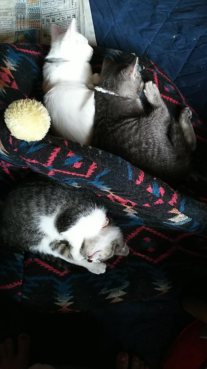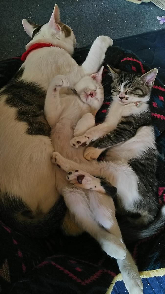 部屋中を走り回ったり,オス猫のおっぱいもらったり😊