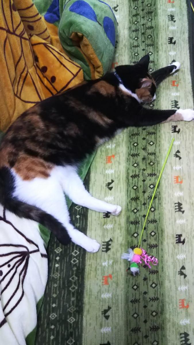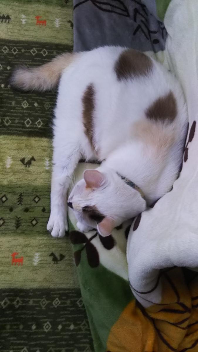 人馴れはまだだけど、昼間に独りで寝るときは私の枕に乗っています。