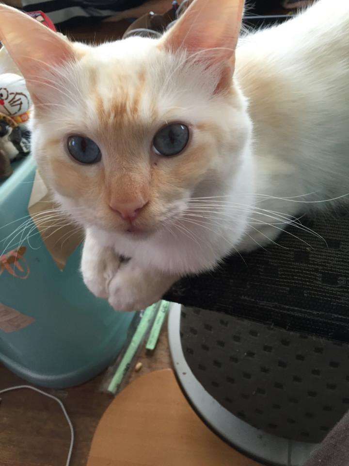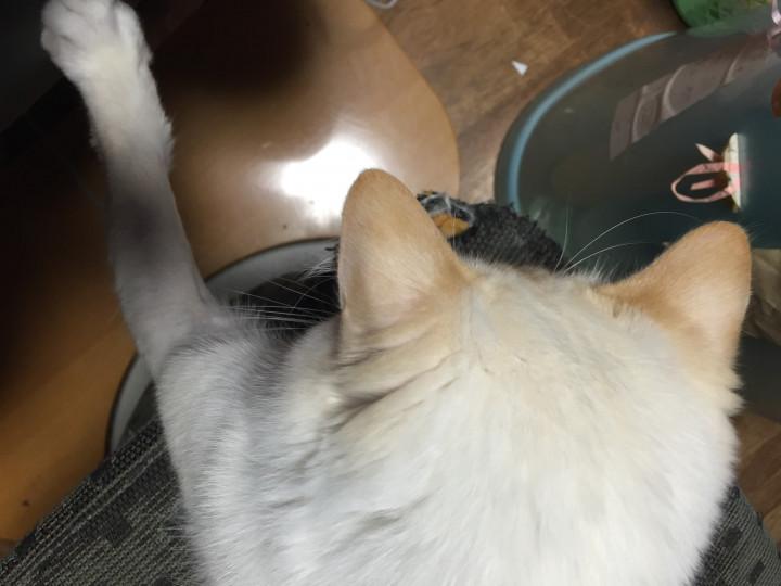そういうふに私が怒っちゃった時には、こんな風に前足1本だけを必死で伸ばして、ホンマはそこに座りたいねんとイスにタッチ💧