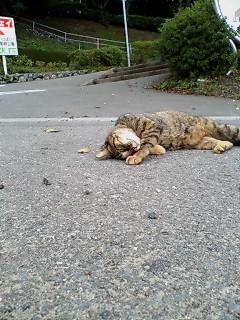 こんな格好で野良猫が寝てたんですよ。寝相悪すぎ!まるで酔っ払いの行き倒れですよ。それにしてもこんな無防備な状態で猫が寝てるなんて。笑えますよね。