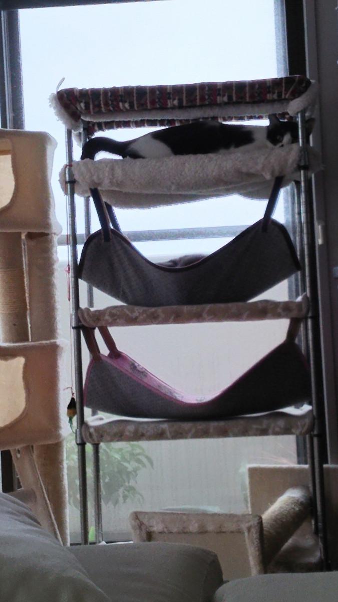 ずっと文句を言ってて、和室に入ろうとしてモモに気づき戻って文句を言う。一晩中文句を言っていました。上からモモを見つけるとシャー。
