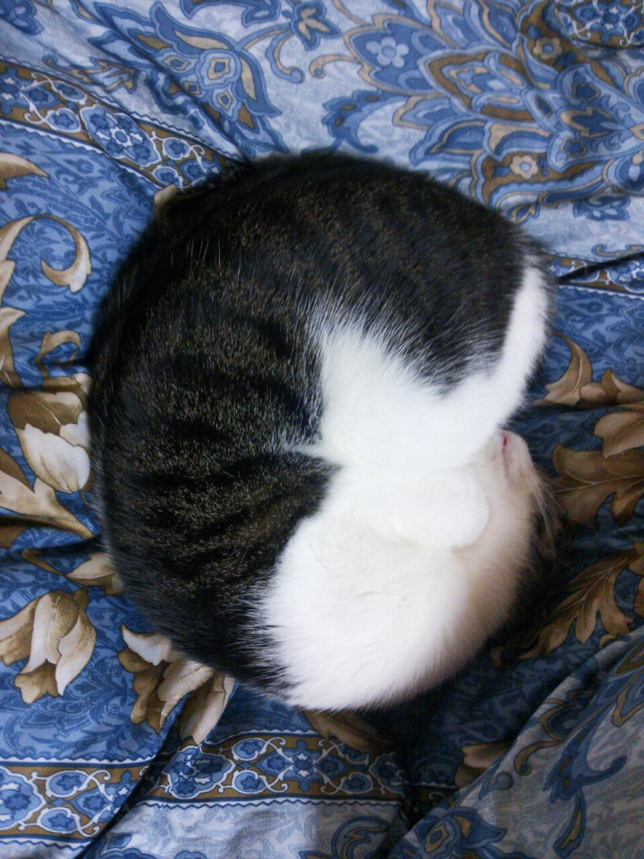今日もしおみちゃんとゴロゴロしてましたが、私の布団の真ん中でニャンモナイト発動!