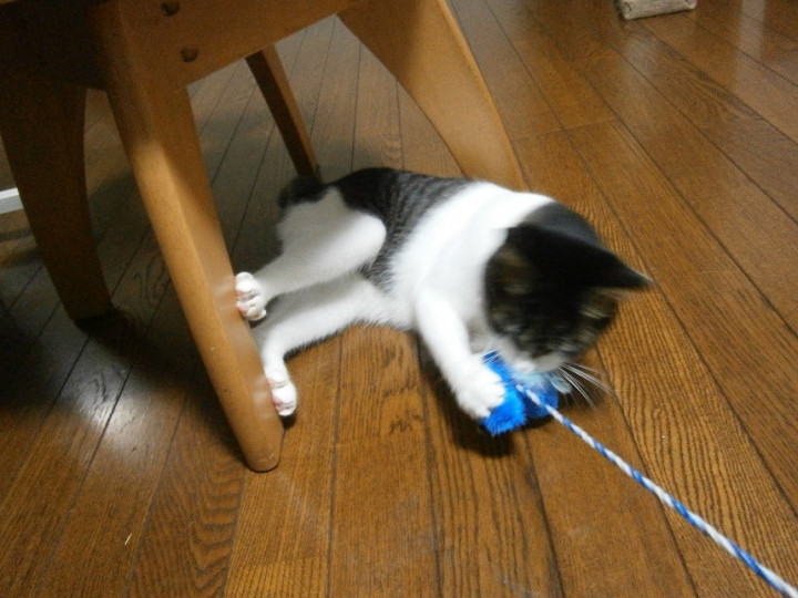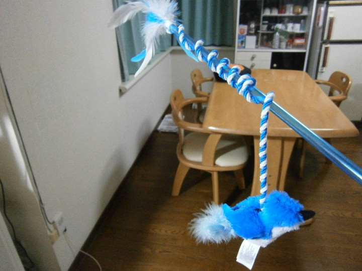 お気に入りのじゃらし 「ピヨピヨひよこちゃん」がしおみちゃんとの引っ張り合いの末、柄がポキっと折れてしまったので 今日は新兵器投入です♪