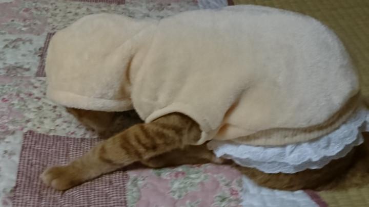 かなり洋服も増えてはきてますが、フード付きのはもっていませんでした。なんとなーく、嫌がるかな?邪魔かな?とおもってたので買ってはいませんでしたが、、