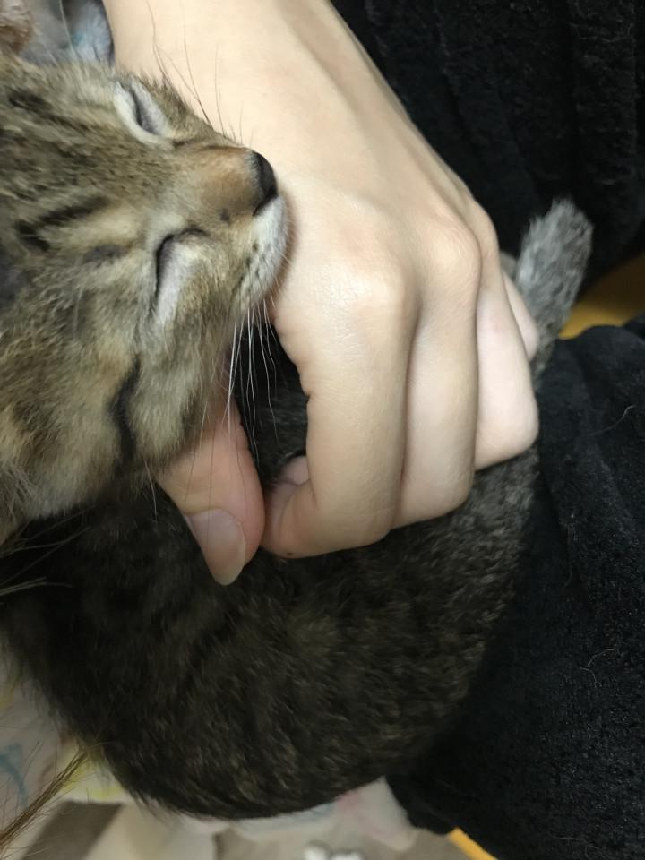 お水は飲んだけど、ご飯食べないから手で口の中に入れてあげた。