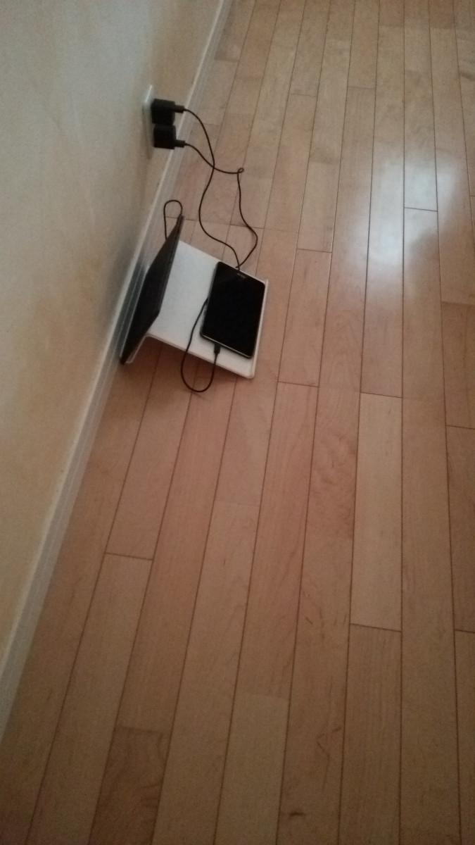 いつの間にか旦那によってタブレットが廊下で充電されていた。