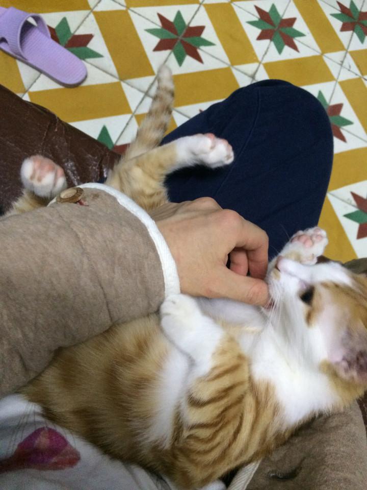 長時間の絶食は猫にとっては危険だということで、慌てて市場で、烏骨鶏を買い、茹でてあげたら、がっついて食べていました。