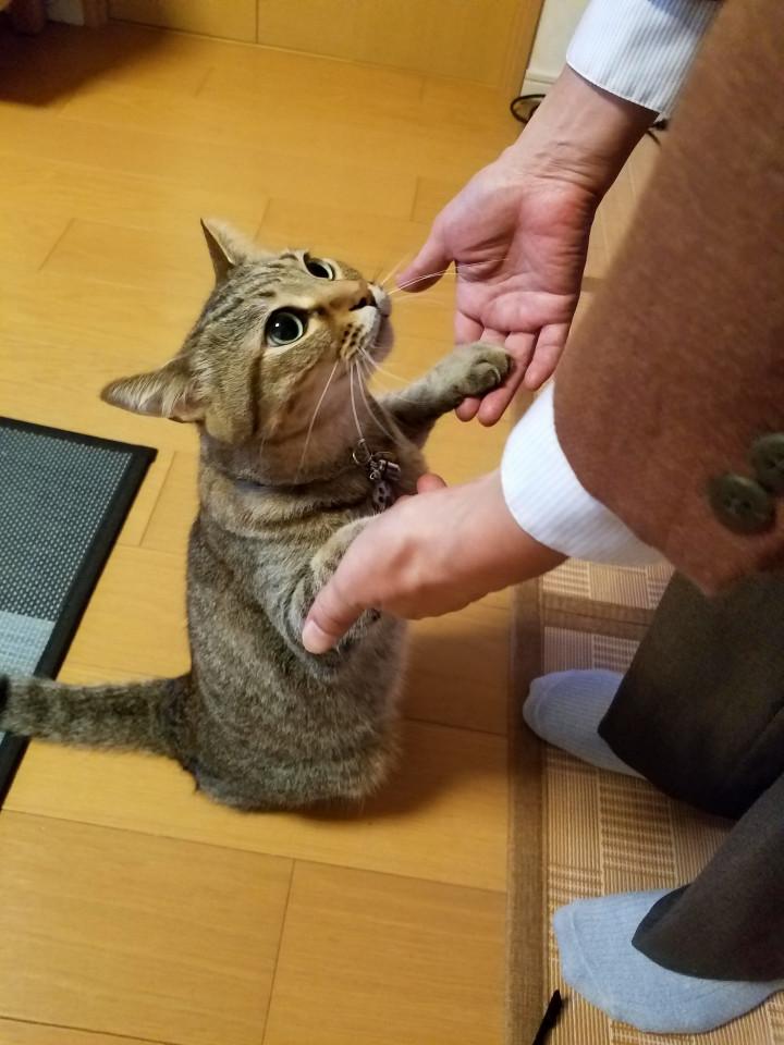 おとさんにすがりつくドラくんを撮ったら、なんだか「おじいちゃん大丈夫?気を付けて歩いてね」になってしまった😅