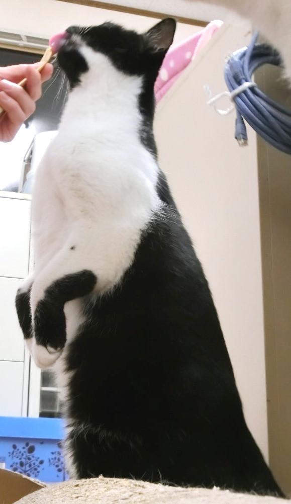 ちゅ~る効果により、白黒ズは二本立ちをマスターしました。