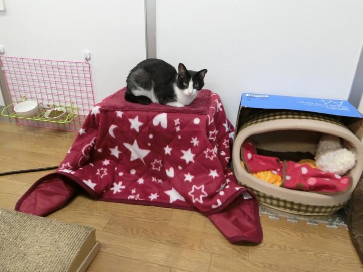 今の猫用コタツは柄も可愛いのが色々で、手触りもふわもこ。