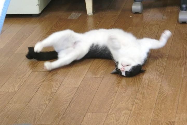 職場の暖房も快適で、白黒ズもぐねぐねと。