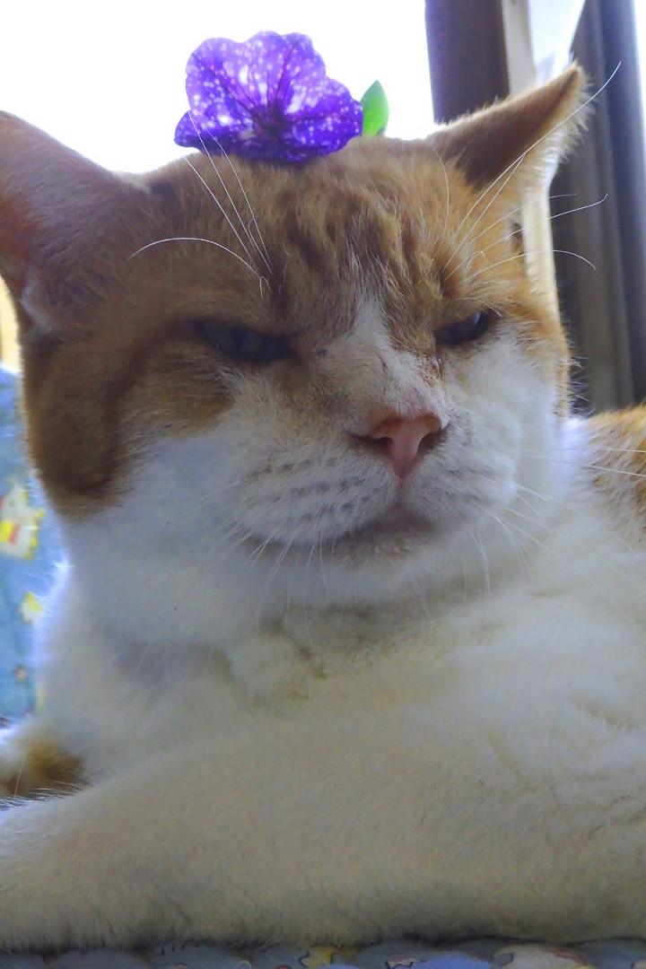 おじいさんにゃんこなのでお目目もあんまりきれいじゃなくて