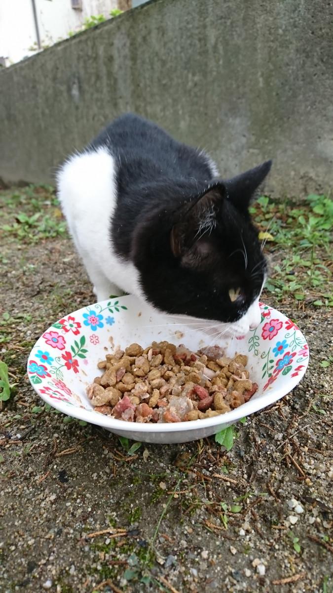 昨日から私に馴れてもらうため、自宅裏の公園でご飯をあげています。