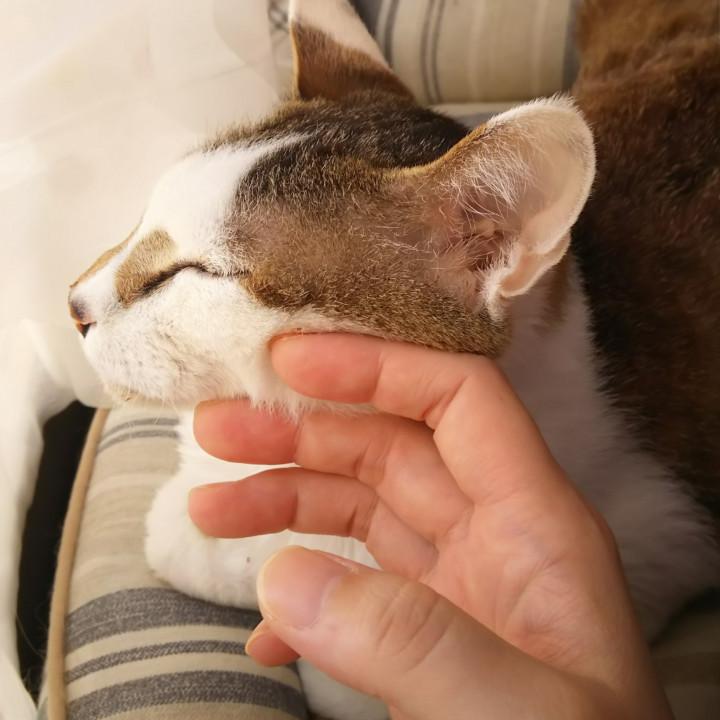 撫でるとぐるぐる気持ち良さそうに寝てる✨