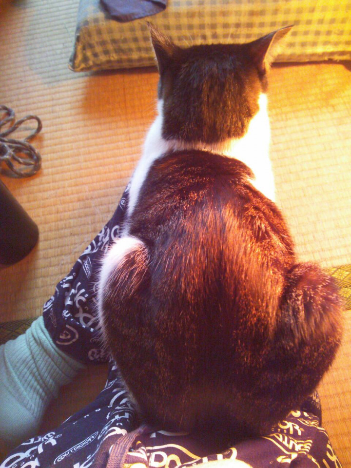 むしろお尻の事よりも 私の太ももの上に乗っかってよく寝れるなぁ と感心です。
