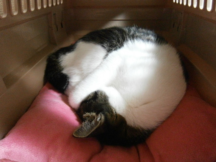 今日はキャリーの中で寝ていました。もう病院とかのトラウマもすっかりないようです^^