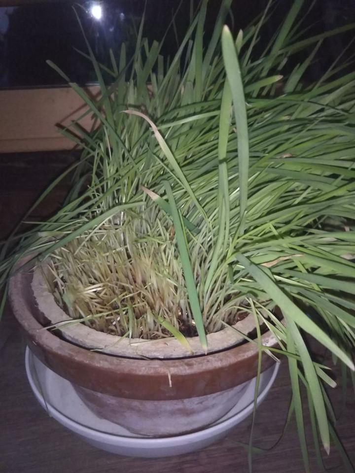 伸びすぎてボウボウになった猫草、これをバッサリと切ればまた新しい芽が出ていつも新鮮な草が食べられるのでは!と思い、半分ぐらい根元から刈り込んでみました。