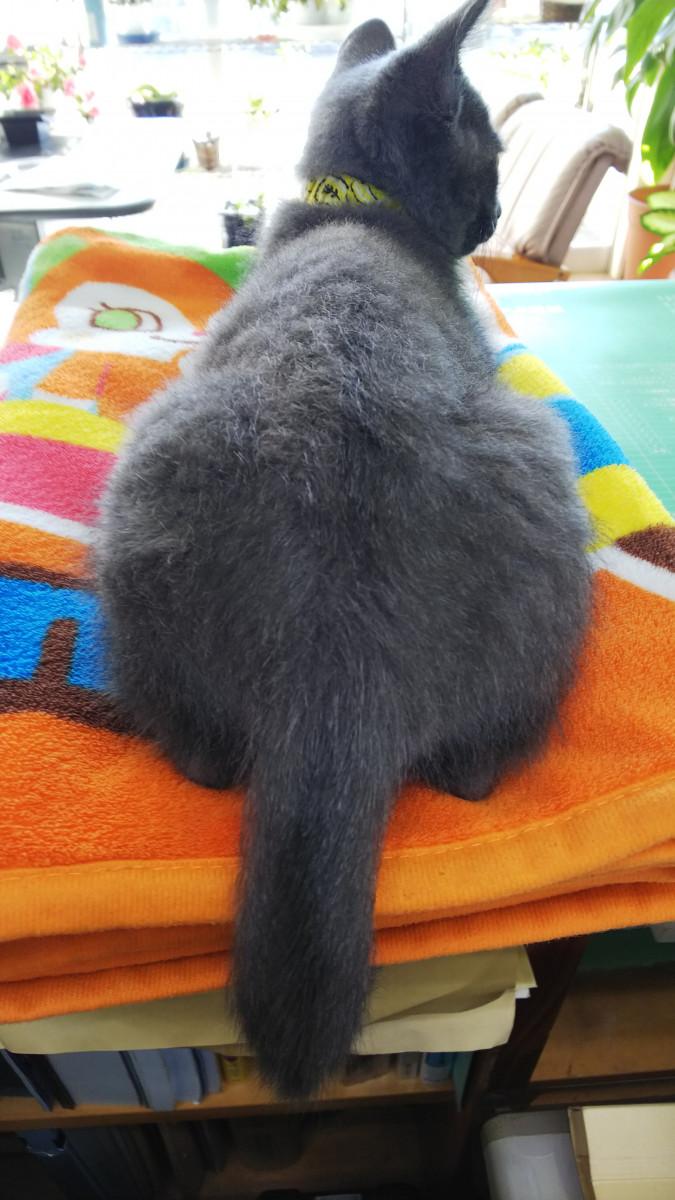 ココで出会ったロシアンブルー風のグレーカラーのジル君♂とネコLIFEを楽しんでいます! 事務所と住居で常に一緒です。 R6年4月〜ミヌエットのプッチが仲間入りしました〜!