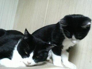 たしか引き取った時、「仔猫はどちらもオスです」と聞いたはずなのですが・・・