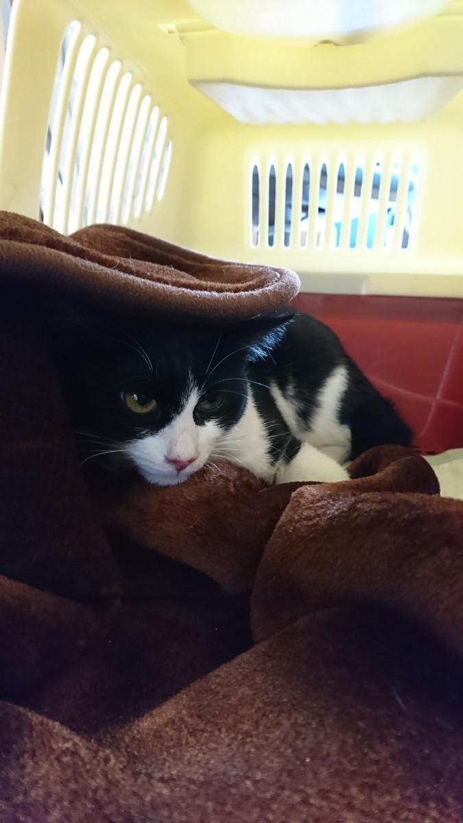 ゲージの中の様子を見ると、毛布の中に頭を入れています。