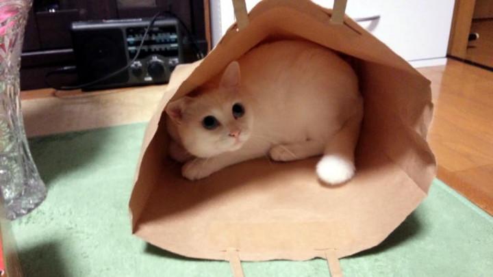 「ニャんな~ん」(箱はダメだったけど、紙袋なら入れたニャん。)