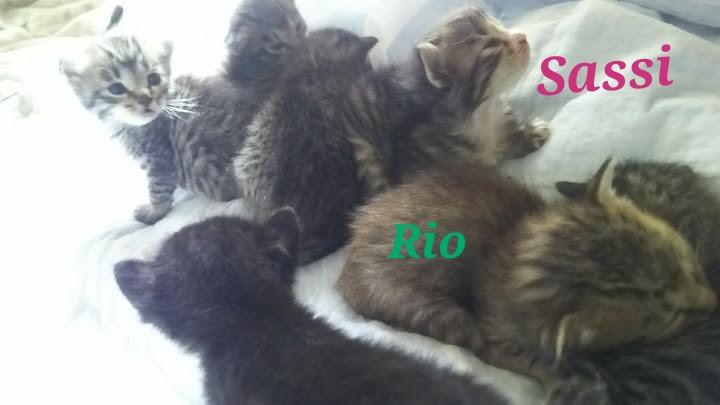 リオは右下の頭を右に向けてる、ちょっと茶色い仔猫🐱