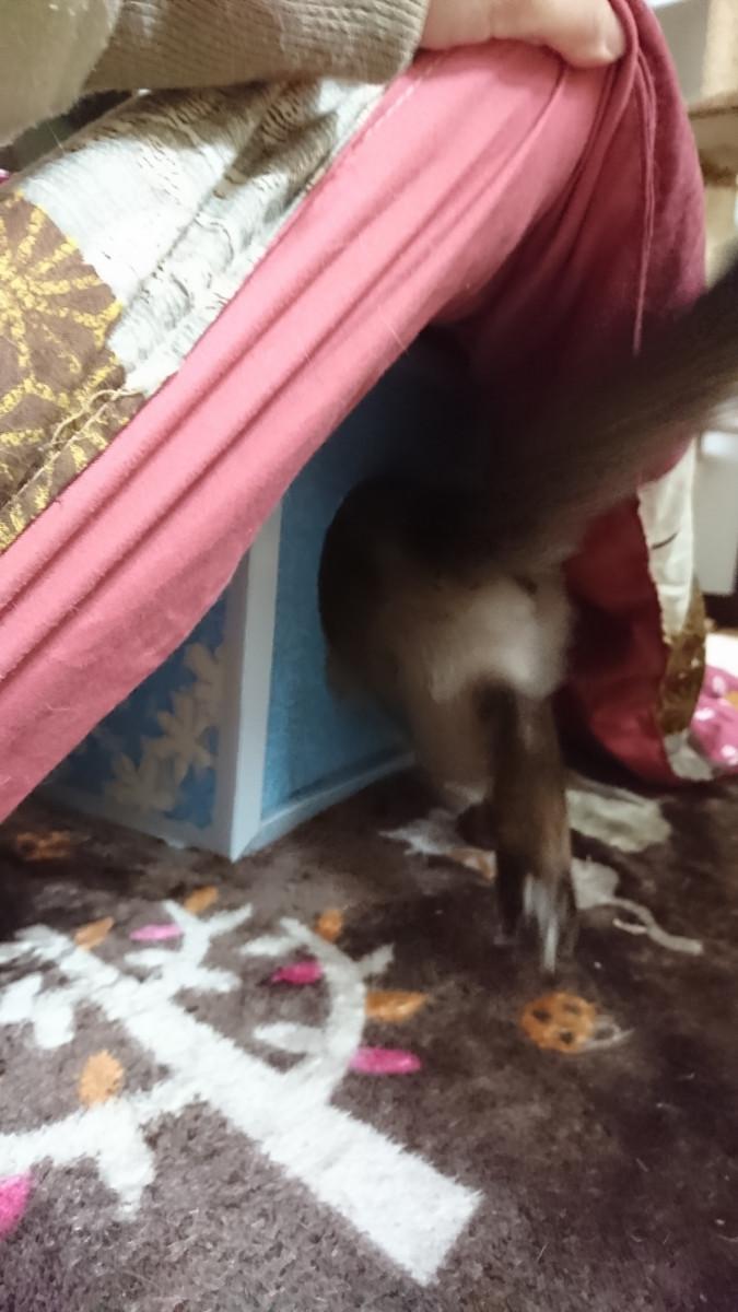 大福が私の足を見事に爪食い込ませ走り去り。。
