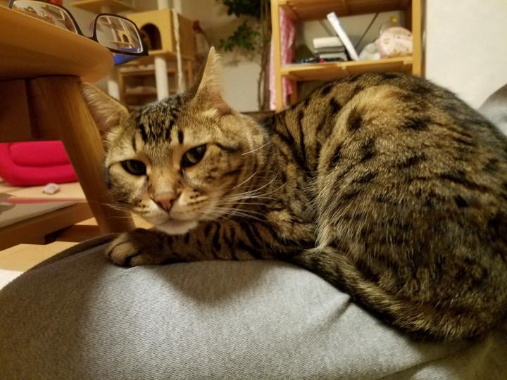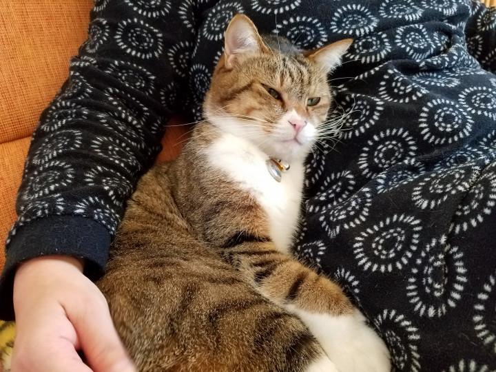 ニコちゃんは、おとさんの膝の上でも寛ぐように😊