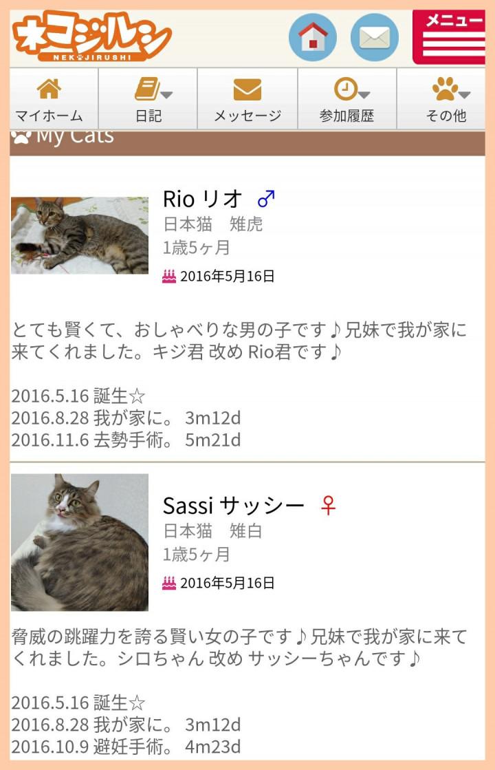 プロフィールのMy Catsが未だに仔猫時代のもの。