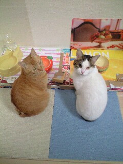 私達がケーキを食べてるときに、おやつをあげたら、座ってるから、もっとちょうだいと