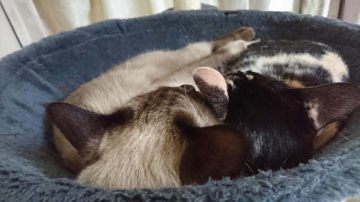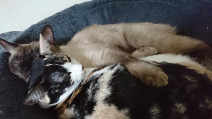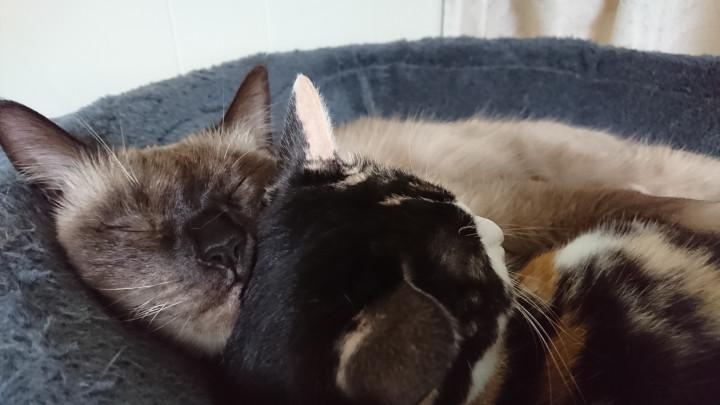 大福『むにゃむにゃ。小春がくっついてくれる夢をみてるにゃー。いつも殴られるから幸せにゃー。』